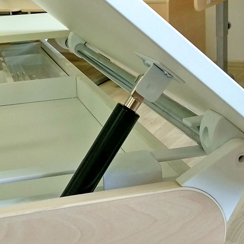 Регулируемая часть столешницы оснащена качественным подъемным механизмом Hettich (Германия) и имеет угла наклона от 0 до 45°