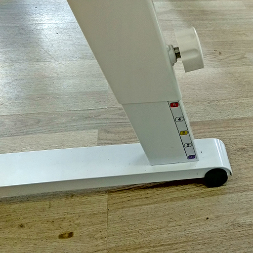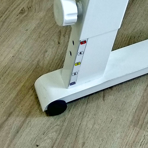 В задней части опор находятся колесики для облегчения перемещения стола. Для перемещения необходимо наклонить назад стол до контакта колес с полом. В передней части опор находятся винтовые ножки (подпятники) для регулировки уровня стола на неровной поверхности